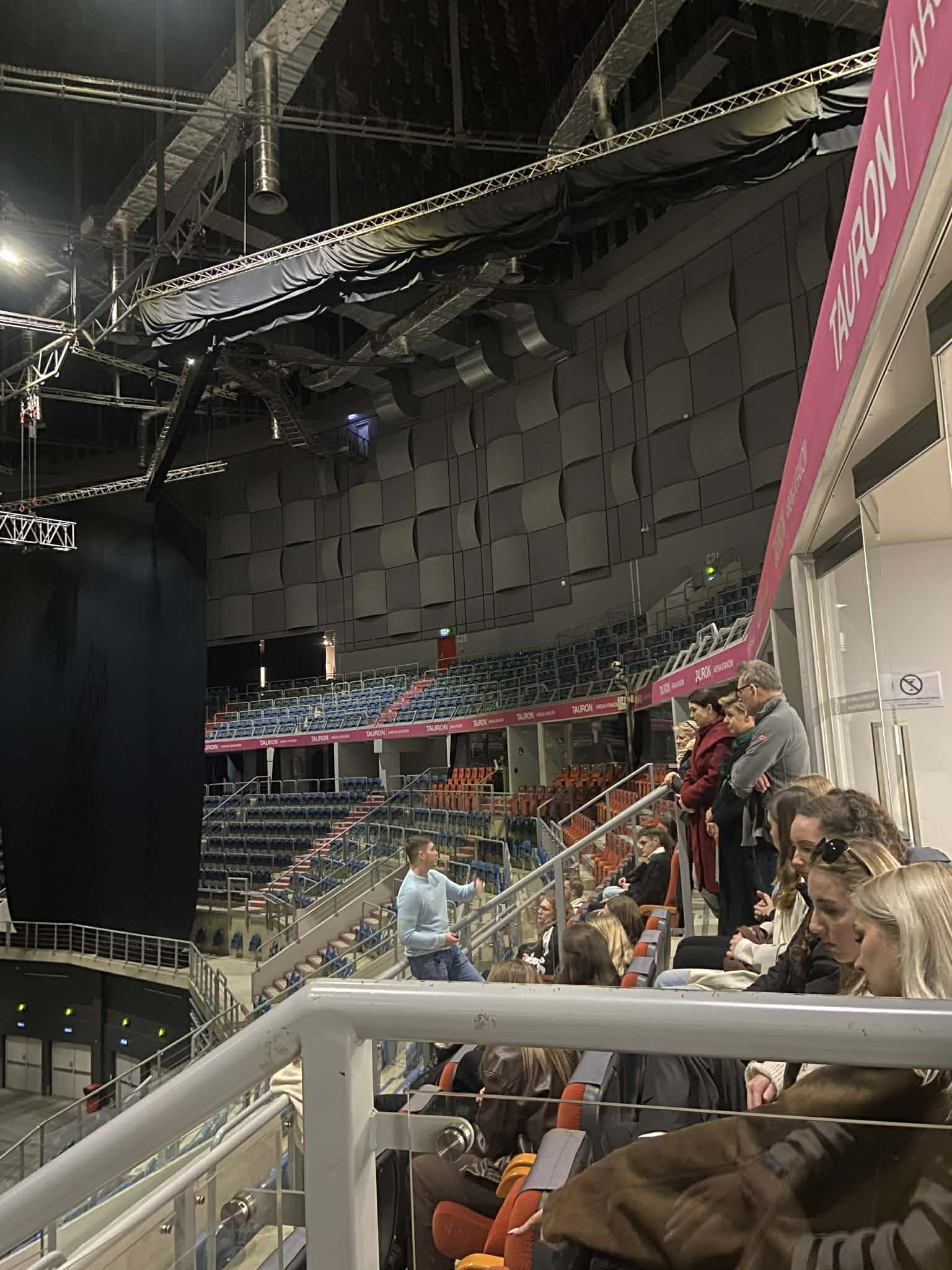 4 marca 2026 r. studenci II roku kierunku Zarządzanie Rekreacją i Rozrywką w ramach zajęć typu study tour odwiedzili TAURON Arena Kraków. Celem wizyty było poznanie funkcjonowania jednego z największych obiektów widowiskowo-sportowych w Polsce oraz zapoznanie się z praktycznymi aspektami organizacji wydarzeń na dużą skalę. Podczas spotkania studenci zostali oprowadzeni po obiekcie przez Hubert Kapuściński z Działu Marketingu, Sponsoringu i PR. Wizyta rozpoczęła się prezentacją dotyczącą historii areny oraz rozwiązań organizacyjnych stosowanych w sytuacjach kryzysowych. Następnie uczestnicy mieli okazję zobaczyć najważniejsze przestrzenie obiektu – m.in. trybuny, strefy VIP oraz zaplecze z szatniami przeznaczonymi dla zawodników i artystów. Dzięki tej wizycie studenci mogli poznać kulisy funkcjonowania nowoczesnej hali widowiskowo-sportowej oraz dowiedzieć się, jak w praktyce wygląda przygotowanie i realizacja dużych wydarzeń. Spotkanie stanowiło cenną lekcję, pozwalającą lepiej zrozumieć proces zarządzania wielofunkcyjnym obiektem eventowym.
