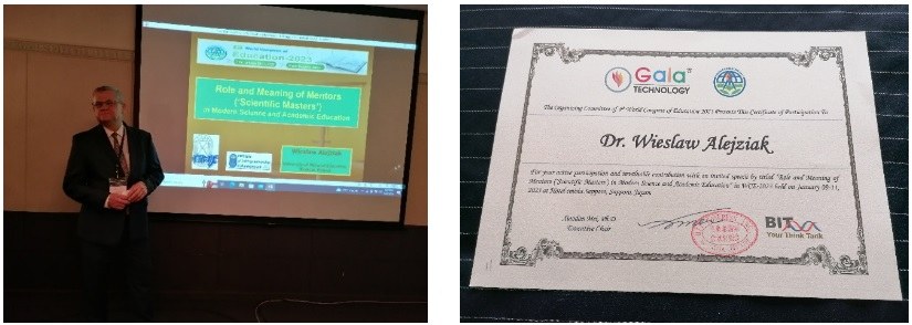 W dniach 9-11.01.2023 r. w Sapporo (Japonia) odbył się IV Światowy Kongres Edukacji (World Congress of Education), który był częścią wielkiego przedsięwzięcia naukowego pod nazwą „Cluster Meeting of Gala Technology 2023”, w ramach którego jednocześnie i w tym samym miejscu (31-piętrowy hotel „Emisja” w Sapporo) odbyło się aż 9, niezależnie wcześniej organizowanych, światowych kongresów naukowych: