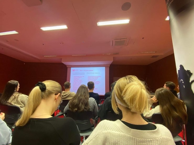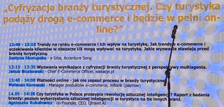 Studentki uczestniczyły w konferencji branżowej pt. "Cyfryzacja w branży turystycznej. Czy turystyka podąży drogą e-commerce i będzie w pełni online?", w ramach której wysłuchały wystąpień: Justyny Skorupskiej (e-Izba, Accenture Song), Jakuba Biczkowskiego (Chief E-Commerce Officer, wakacje.pl), Mateusza Kurowskiego (Manager produktów e-commerce, mBank), Agnieszki Kukałowicz (co-Funder, CEO, Qtravel.AI) oraz panelu dyskusyjnego na temat obszarów cyfryzacji w turystyce.