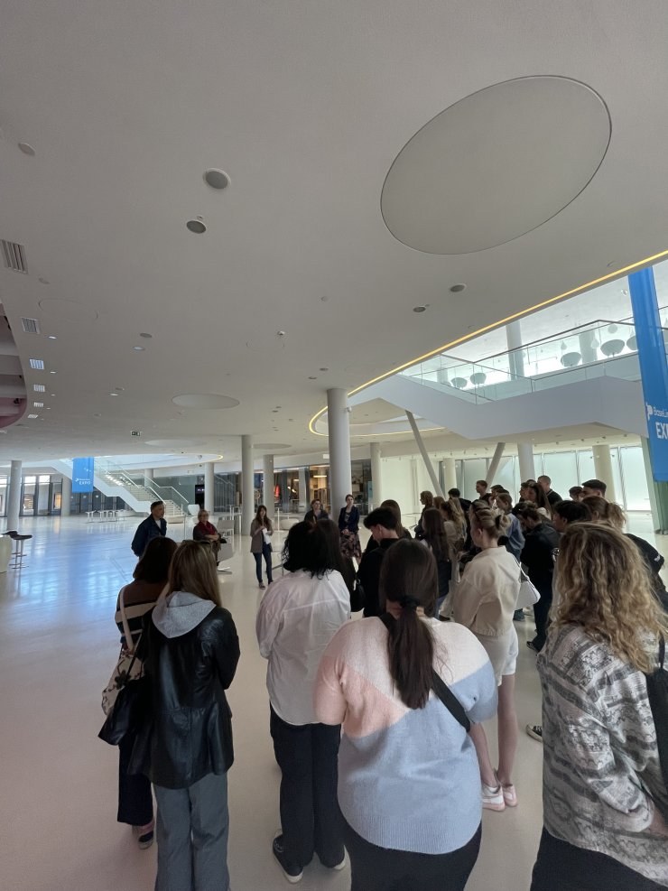 Dnia 15.05.2024 studenci z II roku zarządzania rozrywką i rekreacją tym razem odwiedzili ICE Krakow Congress Centre. Jest to wielofunkcyjny obiekt, zlokalizowany nad Wisłą, w którym odbywają się różnego rodzaju konferencje, kongresy oraz koncerty. Podczas spotkania studenci mogli zobaczyć salę, jak są skonstruowane i jaka jest w nich akustyka. Studenci byli pod wrażeniem jak bardzo wielofunkcyjny jest ten obiekt oraz w jak innowacyjny sposób zaprojektowano sale w zależności od potrzeb klienta. Pod koniec spotkania można było zadawać pytania, Pani menadżer chętnie dzieliła się swoimi doświadczeniami związanymi z pracą oraz funkcjonowaniem obiektu.