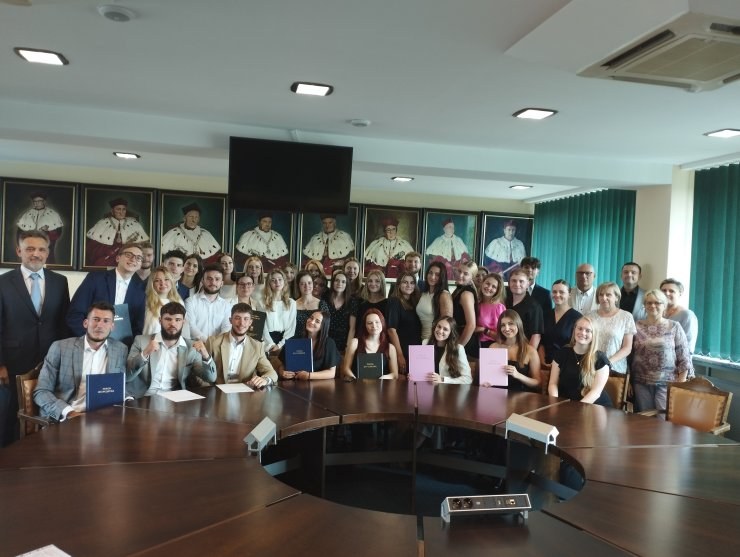 W dniu 09.07.2024r. w sali senackiej Akademii Wychowania Fizycznego w Krakowie wręczono zaświadczenia ukończenia studiów Studentom III-go roku studiów licencjackich na kierunku: Zarządzanie Rekreacją i Rozrywką, którzy jako pierwsi w historii opuszczają mury Uczelni w zakresie kierunku, który został uruchomiony w 2021 roku. W uroczystości wzięli udział Pan Rektor ds. studenckich Michał Spieszny, Pani Dziekan Wydziału Turystyki i Rekreacji Ewa Roszkowska oraz nauczyciele akademiccy przeprowadzający egzamin licencjacki. Naszym Absolwentom dziękujemy za trzy lata współpracy, gratulujemy ukończenia studiów i życzymy wszelkiej pomyślności w dalszym życiu zawodowym i osobistym.