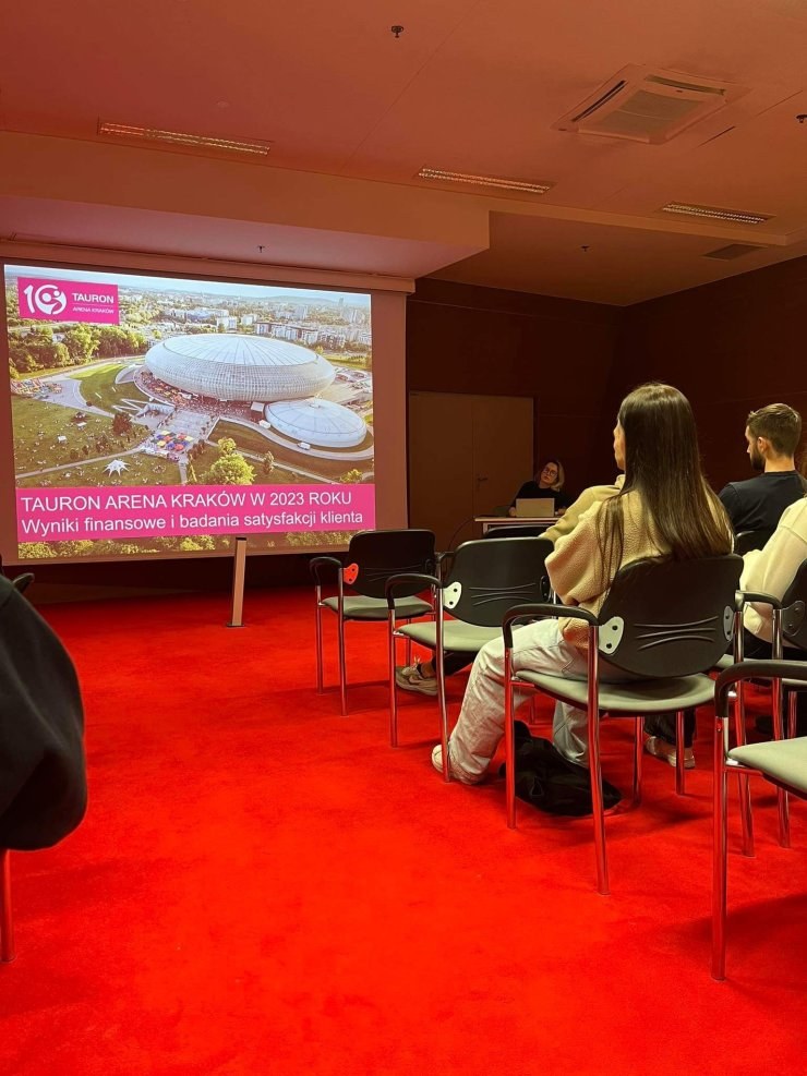 Tauron Arena Kraków - wielofunkcyjna hala widowiskowo-sportowa to kolejne miejsce na mapie Krakowa które mieli okazje i przyjemność zobaczyć studenci kierunku Zarządzanie rekreacją i rozrywką w ramach zajęć study tour. W początkowej części zajęć studenci wysłuchali zajmującego wykładu o historii, projektach oraz planach związanych z rozwojem tego obiektu. Następnie udali się na zwiedzanie całego terenu, zaczynając od trybun, przez szatnie, strefy VIP kończąc na ogromnej płycie głównej Areny. To wyjście pokazało, jak ważne jest świadome kształtowanie marki oraz maksymalne wykorzystanie możliwości jakie daje tak wspaniały obiekt.