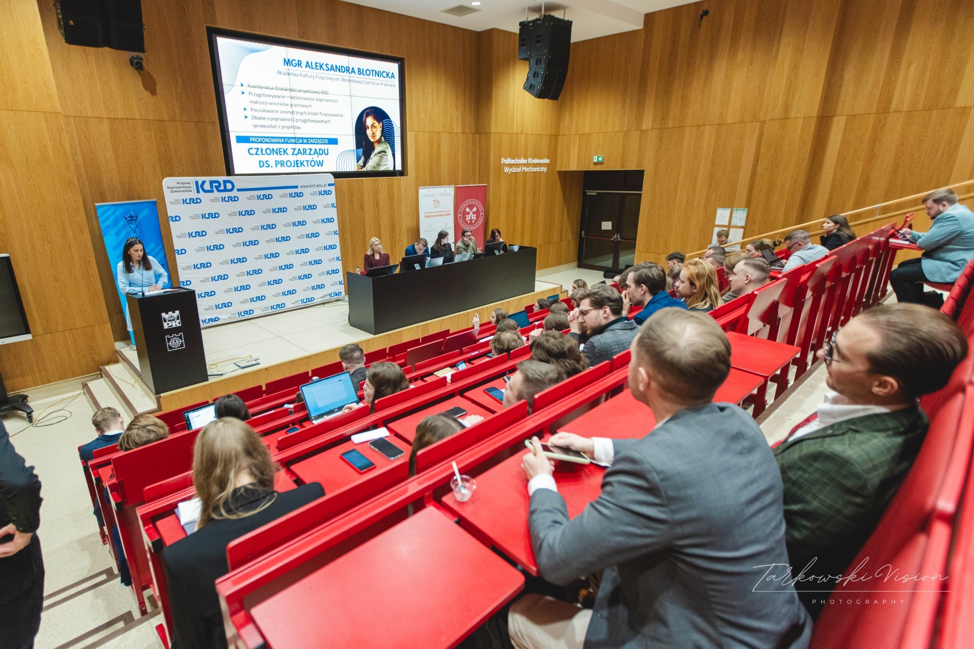 W dniach 5-7 grudnia 2025 r. na Wydziale Mechanicznym Politechniki Krakowskiej odbył się XXII Zjazd Delegatów Krajowej Reprezentacji Doktorantów, podczas którego doktoranci z całej Polski wybrali swoje władze na kolejną kadencję. Na stanowisko członka zarządu ds. projektów została wybrana mgr Aleksandra Błotnicka (Zakład Ekonomii i Zarządzania).