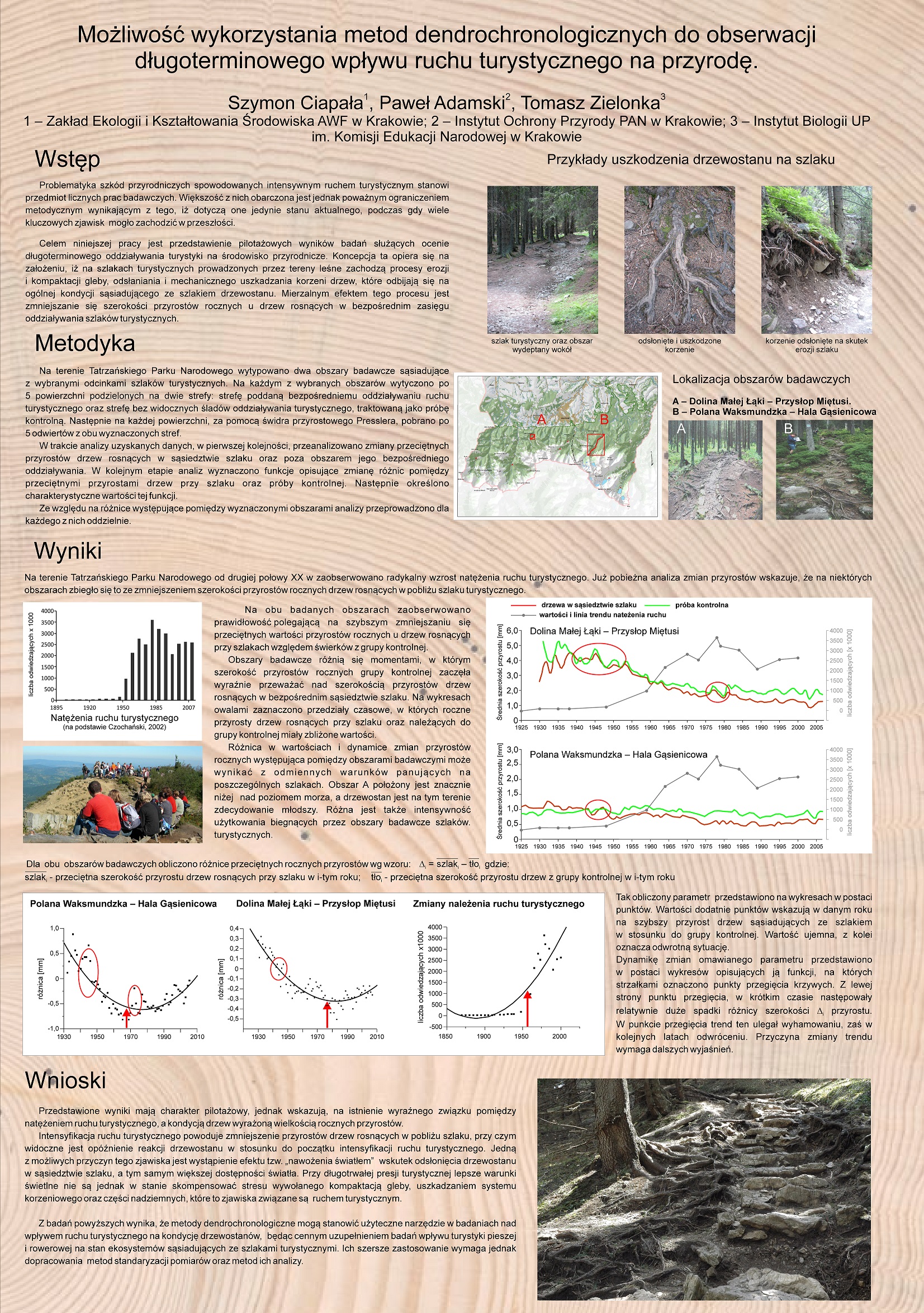 - Ciapała S., Adamski P., Zielonka T. 2014. Możliwość wykorzystania metod dendrochronologicznych do obserwacji długoterminowego wpływu ruchu turystycznego na przyrodę. W: Spojrzenie w głąb słoja - anatomia drewna w badaniach dendrochronologicznych; Rogów, 14-16 lutego 2014 roku
