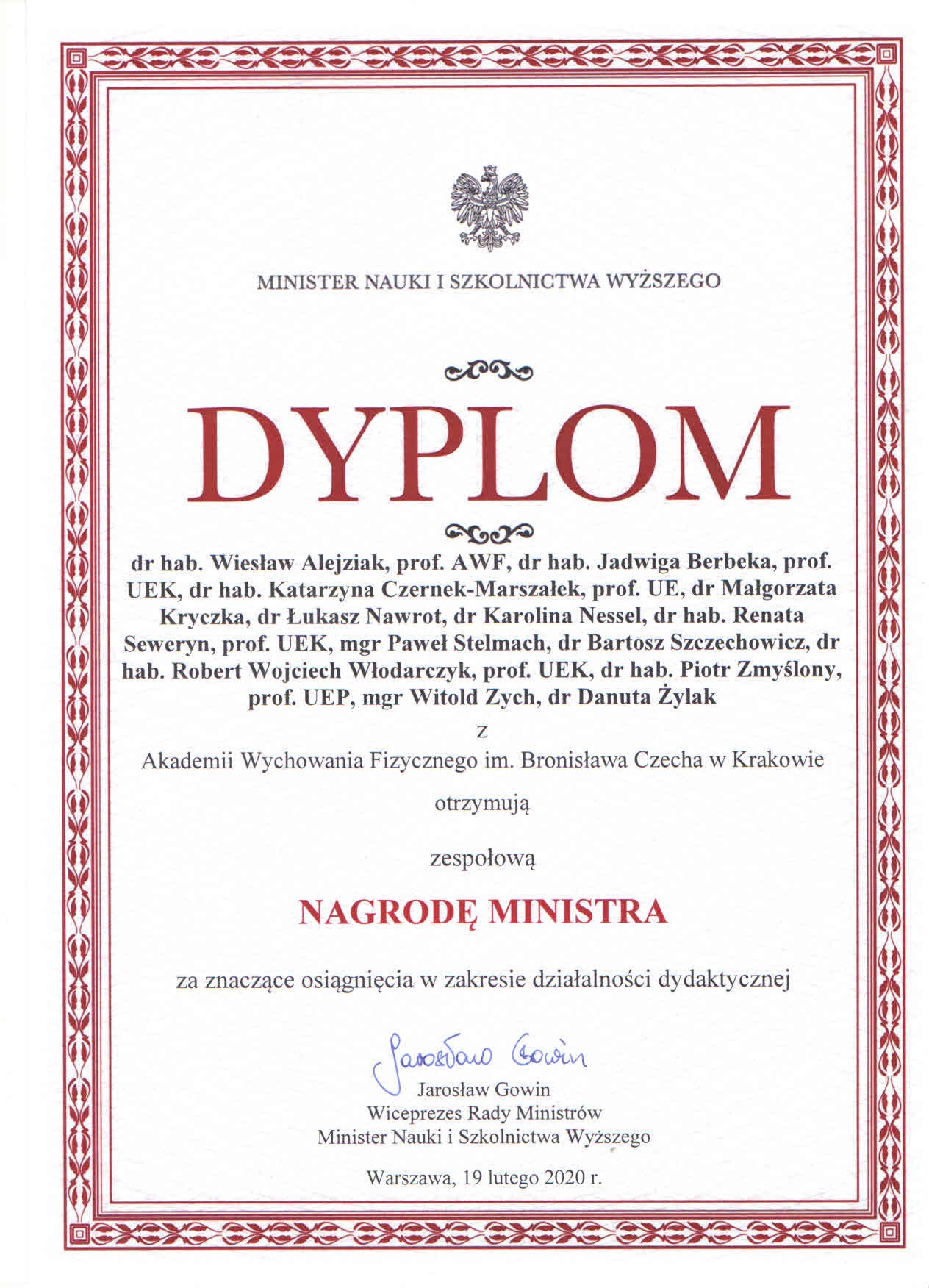 W dniu 19.02.2020 r., podczas Gali Nauki Polskiej w Toruniu (to wydarzenie było kulminacyjną częścią obchodów Dnia Nauki Polskiej – nowego święta państwowego), przyznane zostały nagrody Prezesa Rady Ministrów oraz Ministra Nauki i Szkolnictwa Wyższego. Wśród laureatów nagród MNiSW nie zabrakło przedstawicieli Wydziału Turystyki i Rekreacji AWF w Krakowie.