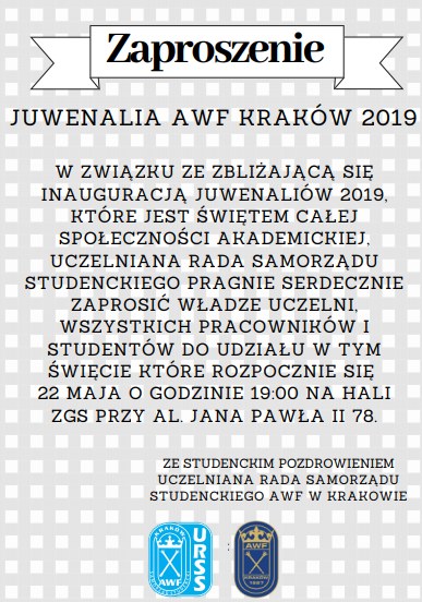 19:00 - Inauguracja Juwenaliów 2019 na hali ZGS,