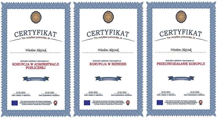 W związku z nowelizacją ustawy o zasadach realizacji programów w zakresie polityki spójności finansowanych w perspektywie finansowej 2014-2020 Polska Agencja Rozwoju Przedsiębiorczości wprowadziła nowy regulamin naboru kandydatów na ekspertów oraz współpracy z ekspertami. Dotychczasowi eksperci musieli przejść dodatkowe szkolenia i uzyskać różne certyfikaty (m.in. Centralnego Biura Antykorupcyjnego). W szkoleniach takich uczestniczył prof. W. Alejziak, pozytywnie zdając egzaminy końcowe oraz uzyskując stosowne certyfikaty w trzech dziedzinach: „Korupcja w administracji publicznej”, „Korupcja w biznesie” oraz „Przeciwdziałanie korupcji”. Prof. W. Alejziak, który został ekspertem Polskiej Agencji Rozwoju Przedsiębiorczości w Programie Operacyjnym "Inteligentny Rozwój", realizowanym w latach 2014-2020, jest - jak na razie - jednym z dwóch ekspertów z zakresu turystyki, która ujęta jest w dziedzinie "Turystyka. Edukacja. Doradztwo".