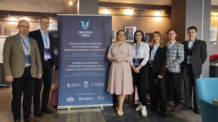 W dniach 2-3 stycznia 2025 r. przedstawiciele Wydziału Turystyki i Rekreacji realizowali badania ankietowe ukierunkowane na wieloaspektową ocenę satysfakcji uczestników XXXV Międzynarodowego Festiwalu Szachowego „CRACOVIA 2024”. Związany z tym projekt badawczy jest realizowany przez zespół w składzie: dr Bartosz Szczechowicz (Wydział Turystyki i Rekreacji, Instytut Przedsiębiorczości i Zarządzania), dr hab. Adam Pawlicz, prof. US (Uniwersytet Szczeciński) oraz dr Ema Petaković (Uniwersytet w Rijece, Chorwacja). W badaniach aktywnie brali udział także słuchacze Szkoły Doktorskiej AKF oraz studenci WTiR: Aleksandra Błotnicka, Ziemowit Górski, Kornelia Walewicz, Maciej Jatzek, Magdalena Bartnicka. Warto dodać, że wspomniany festiwal – którego głównym organizatorem jest Małopolski Związek Szachowy – jest jednym z najstarszych i największych festiwali szachowych w Polsce, a także jednym z najważniejszych wydarzeń tego typu w Europie; jest organizowany cyklicznie i nieprzerwanie od 1990 r. Tegoroczna edycja przyciągnęła ok. 800 zawodników i zawodniczek z 33 federacji szachowych. Więcej na ten temat można przeczytać tutaj: https://www.cracoviachess.net/ oraz https://www.facebook.com/CracoviaChess.