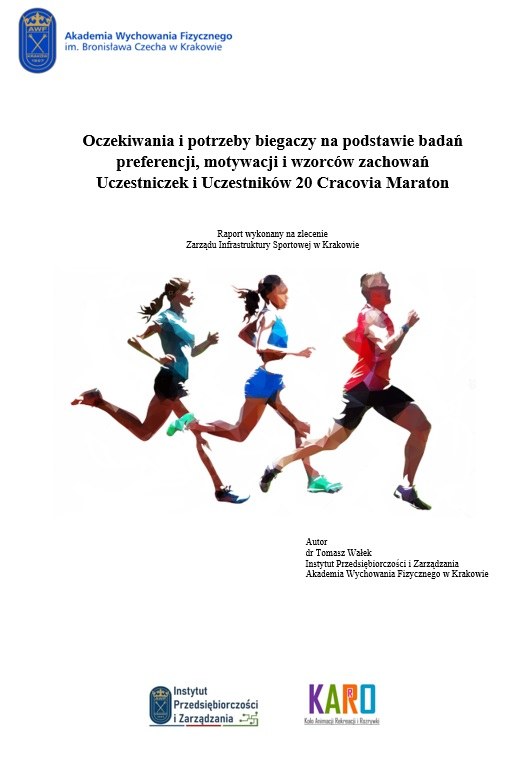 Projekt badawczy pt.:"Oczekiwania i potrzeby biegaczy na podstawie badań preferencji, motywacji i wzorców zachowań Uczestniczek i Uczestników 20 Cracovia Maraton" został zrealizowany dzięki współpracy dr Tomasza Wałek z Instytutu Przedsiębiorczości i Zarządzania, Koła Naukowego "KARO" oraz Zarządu Infrastruktury Sportu w Krakowie. W badaniu objęto reprezentatywną grupę biegaczy, którzy uczestniczyli w tegorocznym, jubileuszowym "20 Cracovia Maraton".