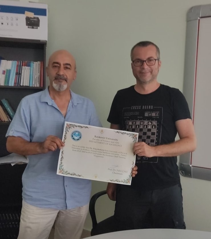 W dniach 3-5 lipca dr Filip Kobiela przebywał w ramach programu Erasmus Plus na Wydziale Socjologii Uniwersytetu w Balikesir (Turcja), gdzie poprowadził seminarium naukowe (na zdjęciu dr Filip Kobiela i prof. Fahri Çaki) poświęcone filozofii gier Bernarda Suitsa.